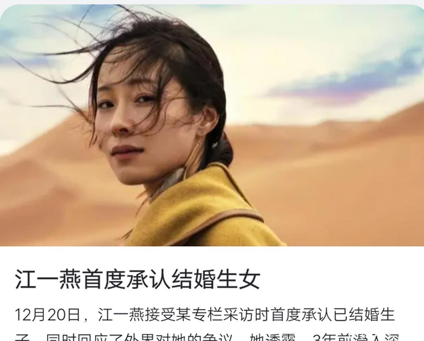 10月30日,内地女演员、歌手、音乐创作人、摄影爱好者、山区支教老师江一燕在《假期中的她们》中,坦言自己已经结束了婚姻。
